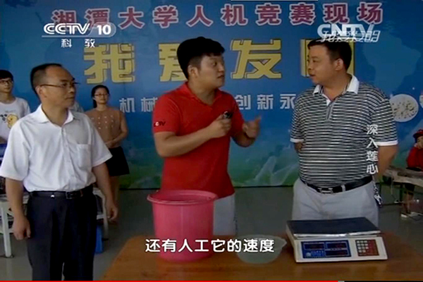 三翼新闻讯(实习记者 王聪艳)10月17日,央视教育频道《我爱发明》栏目播放了湘潭大学机械学院教授马秋成发明和改进全自动莲子去心机的全过程。 “湘莲甲天下,潭莲冠湖湘”。湘潭市莲子素来以粒大饱满,质地细腻,清香鲜甜闻名。但千年来,湘莲的莲子去心生产始终是传统人工方法。工人通过锋利的钻头来去除坚硬的莲心,虽然操作简便,但这钟种方法不仅费时费力,效率低下,而且存在极大的危险性。在这种情况下,土生土长的马教授决心改变这种传统的去心方式。 马教授的一代机是利用链条转动来移动莲子,通过高速旋转的钻头来去除莲子。但在一代机的生产过程中易出现钻头打偏的问题,并且莲心易被污染。在经过几天深思之后,马教授改进了一代机,于是二代机诞生了。二代机相较于一代机,莲子的出产量、打孔精确度都有了明显的提高,但是由于莲子大小不一以及钻头旋转时直径会扩大,因此导致了生产过程中莲子的浪费。 面对手工工人“这机器一定有问题,不行”的咄咄逼人,马教授却表示自己有信心,自己已发现了不足,他相信自己会改好二代机!几日后,在琴湖食府人机大战拉开了帷幕。八名人工对战机器。改良后的三代机通过调节莲子位置的压板,在数量和质量口感上赢过了人工。最终,马教授的全自动莲子去心机赢得了比赛!